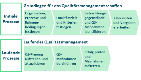 - Qualitätsplanung: Hier werden die Qualitätsziele festgelegt und Maßnahmen definiert, um sicherzustellen, dass diese Ziele erreicht werden.